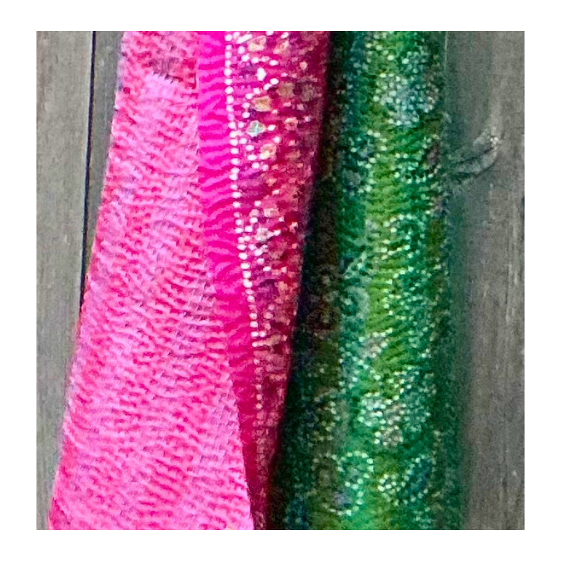 - One-of-a-Kind Fabric: Made from two layers of vintage silk sari fabric, carefully chosen for their unique colors and patterns—no two scarves are the same!